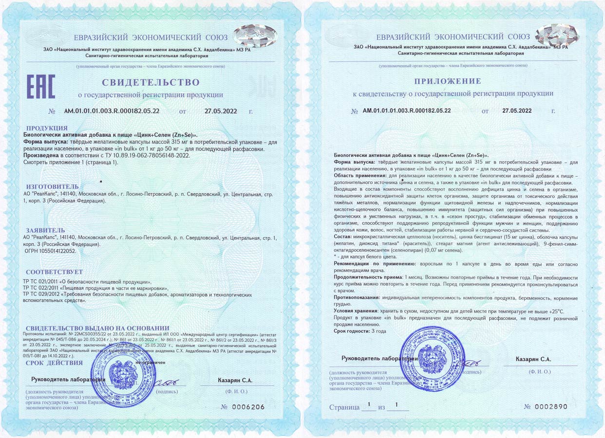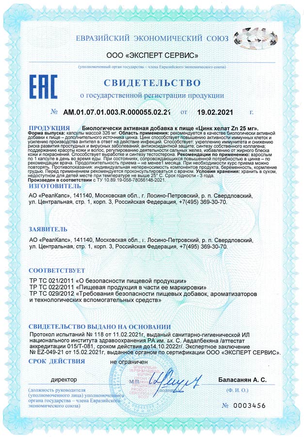 Свидетельство о государственной регистрации № AM.01.01.01.003.R.000369.12.21 от 28.12.2021 ТУ 10.89.19-060-78056148-2021